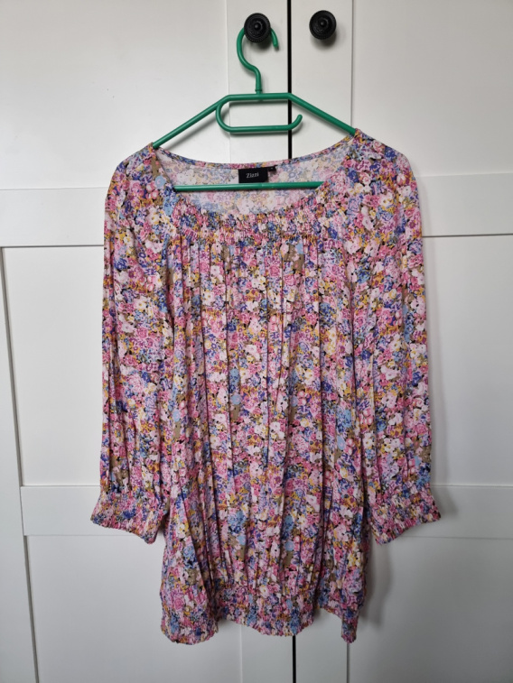 Różowa bluzka w kwiaty to lekka i kobieca propozycja, która doskonale wpisuje się w wiosenne i letnie stylizacje. Wykonana z przyjemnej w dotyku wiskozy, bluzka jest przewiewna i komfortowa, idealna na cieplejsze dni.