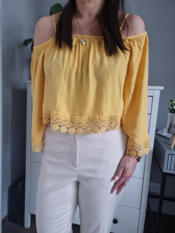Żółta bluzka, z haftem, odkryte ramiona r. 36